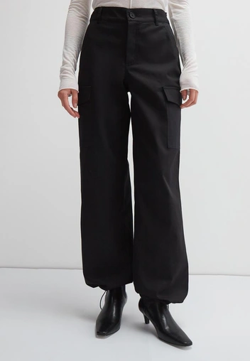 Страсти по карго не утихнут и в этом сезоне, поэтому добавлять их в шопинг-лист можно смело. Разве что станут они куда более лаконичными: остромодные модели по сути — это просто прямые брюки с акцентными накладными карманами. Присмотритесь к вариантам из плотного хлопкового твила: материал отлично держит форму, вынослив к активной ежедневной носке и не требует особого ухода. Миксовать карго с обувью легко — достаточно добавить к ним брутальные ботинки на шнуровке или челси. Кроме того, на их основе можно составить классный аутфит для вечеринки: достаточно зарифмовать их с коротким топом в пайетках и обувью на каблуке.