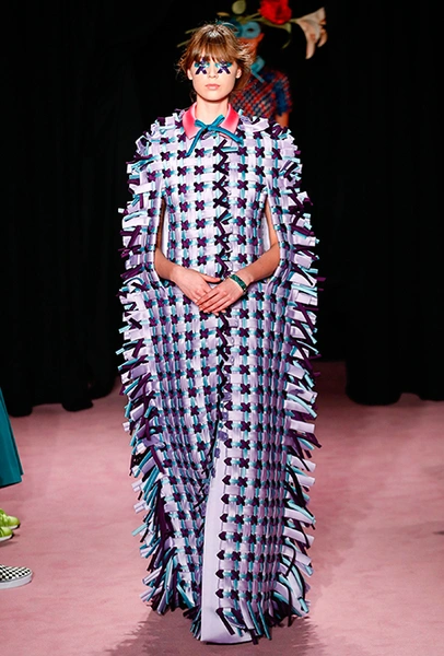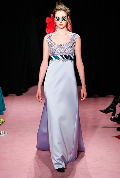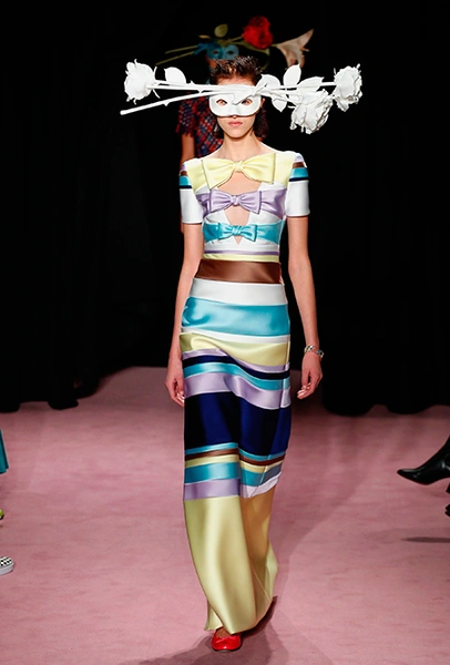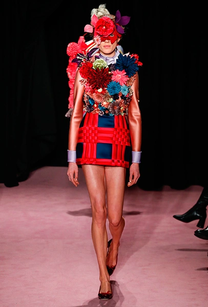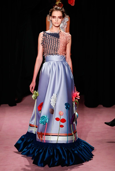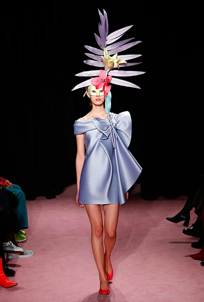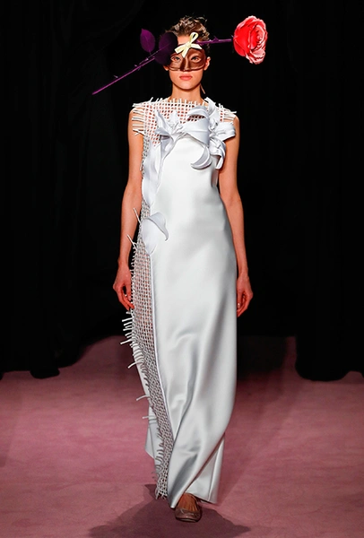 Темой для декора платьев и аксессуаров стали цветы. Поистине, саундтреком всей кутюрной недели впору сделать знаменитый «Вальс цветов» из «Щелкунчика» Чайковского — так часто звучала цветочная тема на парижских подиумах. Хорстинг и Снорен подают ее максимально прямолинейно: на платьях распускаются ромашки, лилии и астры, а на масках селятся огромные срезанные розы. Флора на платьях сочетается с затейливой геометрией прямых линий и большими бантами.