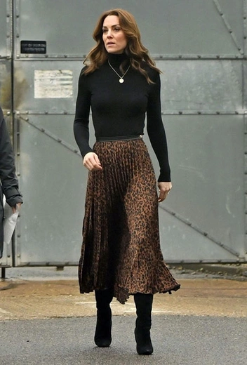 Правда, чтобы блистать, герцогине вовсе не обязательно облачаться в дизайнерские вещи. В январе 2020 года супруга принца Уильяма выбрала юбку плиссе от бренда Zara стоимостью 9,99 фунтов стерлингов. Мало того, что юбка была от бюджетного бренда – монаршая особа с довольно консервативным взглядом на тренды выбрала для официального мероприятия вариант с животным принтом, что для Кейт стало и правда серьезным шагом.