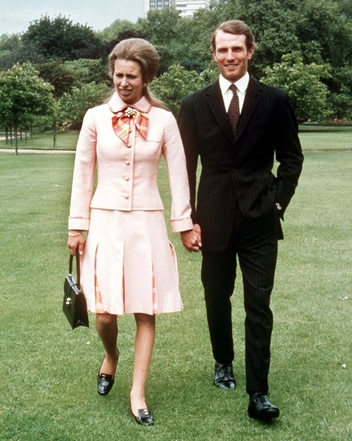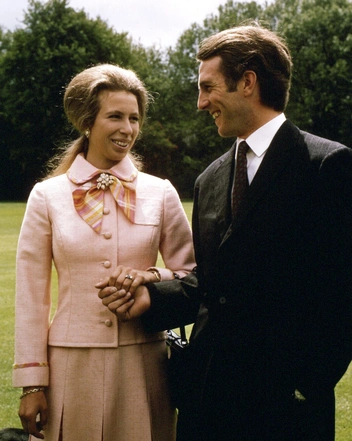 Этот официальный портрет помолвки принцессы Анны и ее жениха, капитана Марка Филлипса, был сделан Норманом Паркинсоном в 1973 году. Большую часть десятилетия дочь Королевы была самой модной и молодой фигурой королевской семьи, хотя ее выбор одежды был довольно ограничен. Так, например, она не могла носить столь популярный тогда богемный стиль хиппи. При этом ей удавалось всегда выглядеть модно, не переступая черту. Для помолвочной фотосессии она выбрала длинное прозрачное белое платье от Зандры Роудс, которое было настолько прозрачным, что принцесса решила носить второе платье под ним.
