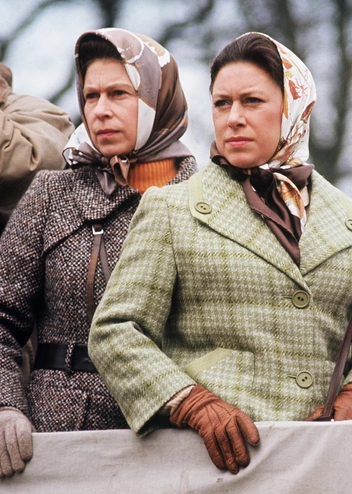 Большую часть времени стиль королевы и ее сестры был совершенно разным — Ее Величество стремились правильно одеваться и быть послом британской моды, в то время как принцесса Маргарет могла быть выглядеть более гламурно и дерзко. Однако в гардеробах сестер все же было немало общего мне нравится, как их объединила любовь к шелковым платкам и шерстяным пальто — таким, как на соревнованиях по бадминтону в 1973 году.