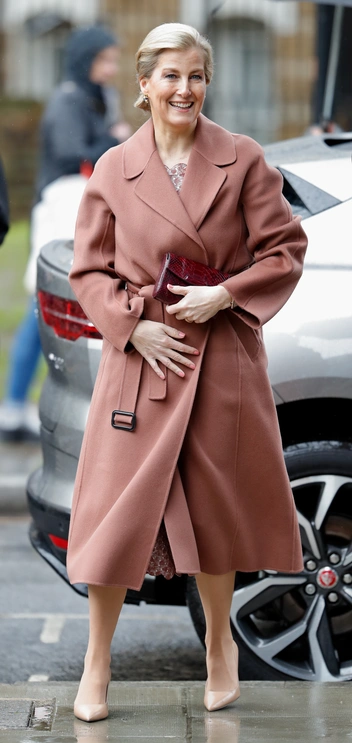Пальто-халат — универсальный предмет одежды, который есть в гардеробах многих стильных женщин. Правда, не все так просто. Неправильный оттенок коричневого может сделать светлый оттенок лица более серым, поэтому графиня Уэссекская с особым вниманием отнеслась к выбору идеального цвета.