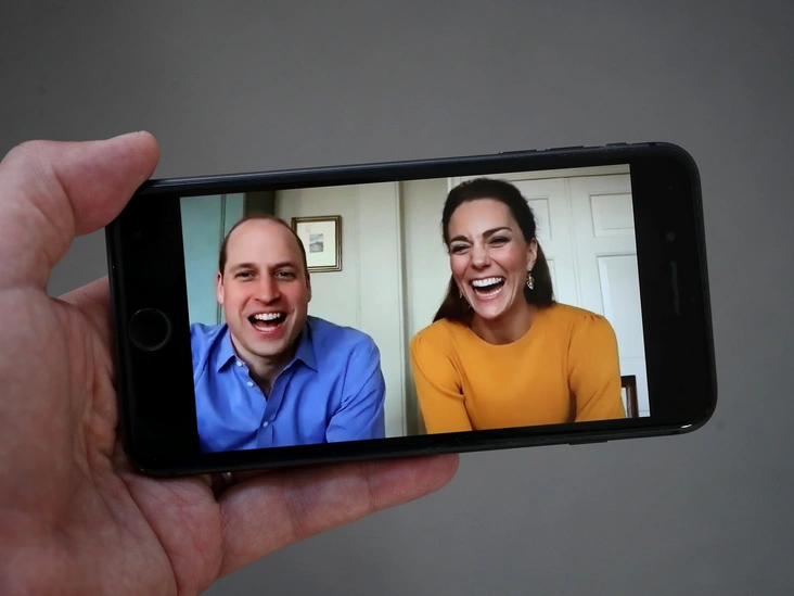 Герцогиня Кембриджская в горчичном топе на Zoom, 2020 год