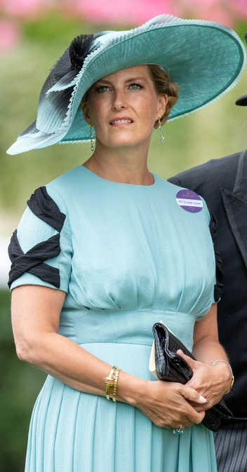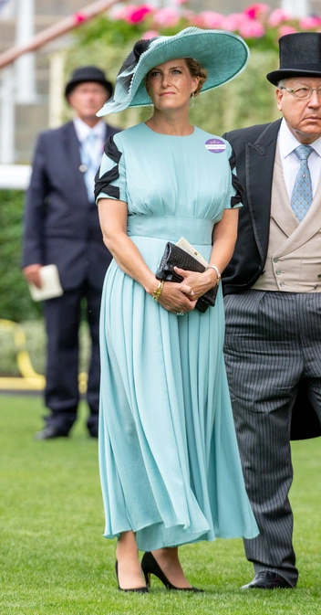 Софи всегда эффектно выглядит на скачках Royal Ascot — в этом ей и правда нет равных. Как правило, по этому случаю она обращается к одному из своих любимых дизайнеров — Эмилии Викстед. Этот наряд для мероприятия в 2019 года отличается особым вниманием к деталям: нижняя сторона ее шляпы обшита той же набивной тканью, что и ее платье.