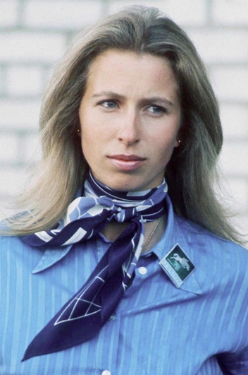 Синяя рубашка принцессы Анны в тонкую полоску, шелковый шарф, завязанный на шее, и пряжка на ремне — этот образ к чемпионату Европы по конному спорту в Киеве — эффектное сочетание американского стиля вестерн и французской женственности. Принцесса Анна нередко экспериментировала с похожими вещами, сделав их частью своего собственного стиля.