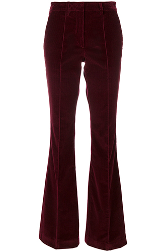 А именно: удлиненные жакеты со слегка утрированными плечами, приталенным силуэтом и цветочной вышивкой, брюки-клеш, юбки с бахромой и прочие приметы эпохи хиппи и диско, сделанные из бархата. Особенно аутентично выглядит бархат теплых оттенков коричневого, зеленого и красного с эффектом состаренности (искусственные вмятины, потертости и якобы выцветшие сегменты). К винтажным вещам можно добавить пару ультрасовременных деталей, будь то рубашка сложного кроя или брюки-кюлоты.