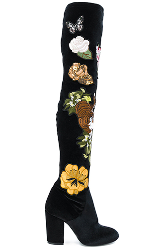 Out: Все, что можно хоть немного заподозрить в вульгарности: леопардовые и тигровые раскраски, яркие «громкие» надписи, логотипы и т.п. (как на бархатной вещи, так и на остальных в комплекте, за исключением небольших аксессуаров). Но все это можно, если вы уверены в своих стилистических навыках настолько, что рискнете создать fashion – китч в духе творчества Алессандро Микеле в Gucci.