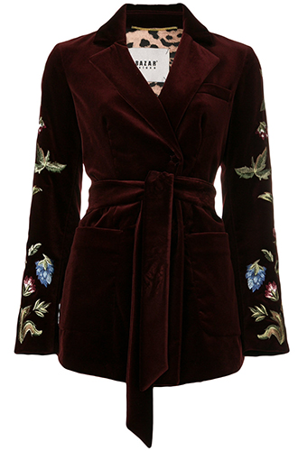 In: Если речь о самой бархатной вещи, то это изящная вышивка или модные лампасы. Если же говорить об окружении, лучше всего подойдет сдержанная геометрия, цветочный рисунок, этнический узор или небольшой не частотный поп-арт на однотонном фоне.