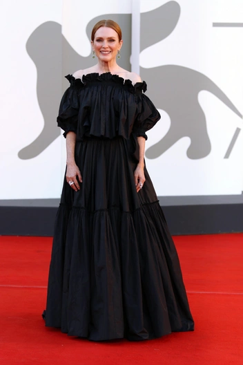 Международное жюри на 79-м Венецианском кинофестивале возглавляла Джулианна Мур. На церемонию закрытия звезда пришла в черном платье: актриса выбрала наряд Christian Dior с открытыми плечами и пышной юбкой. Свой образ Джулианна дополнила серьгами, неброским макияжем, а также лаконичной прической с забранными назад волосами.