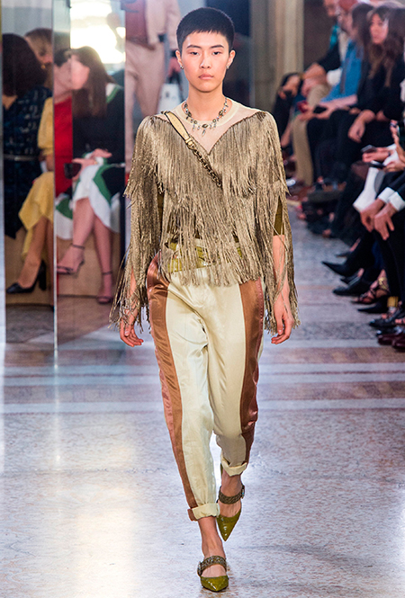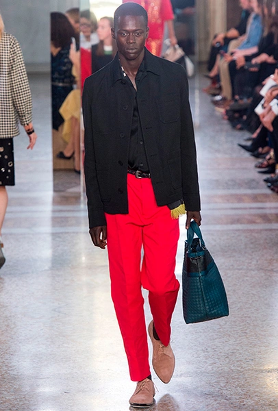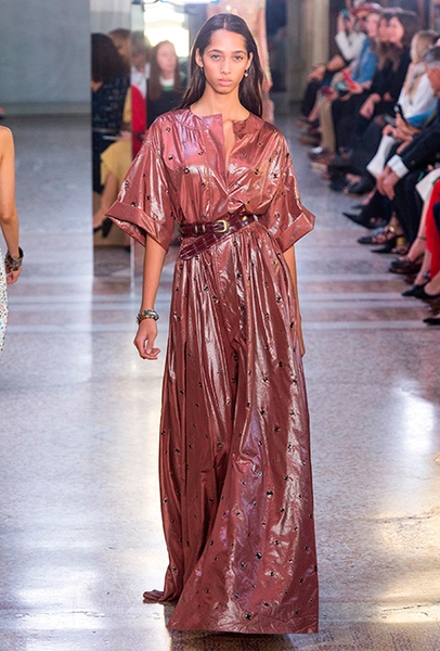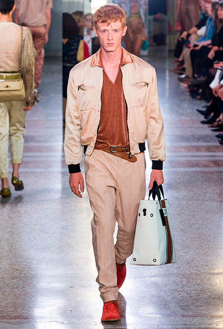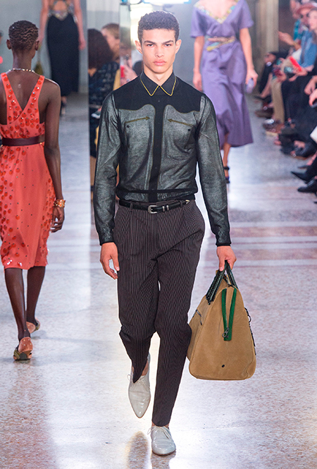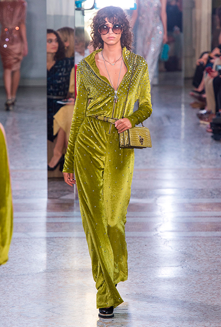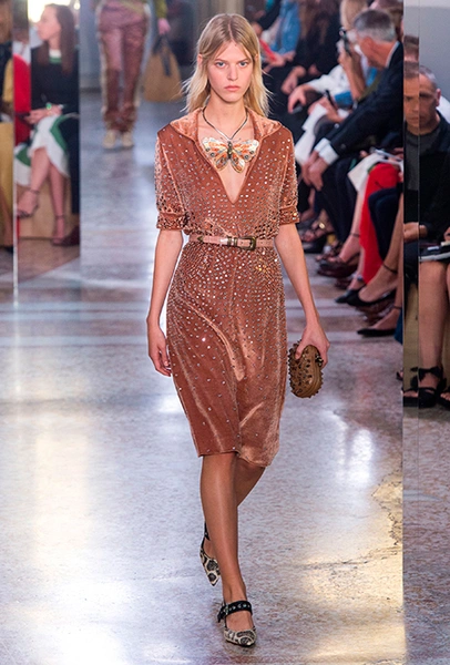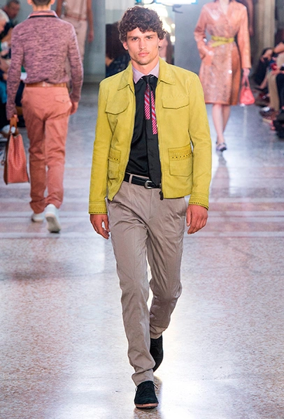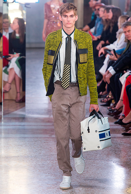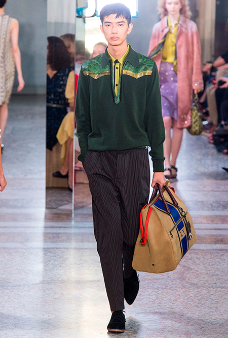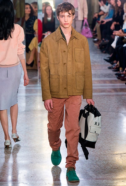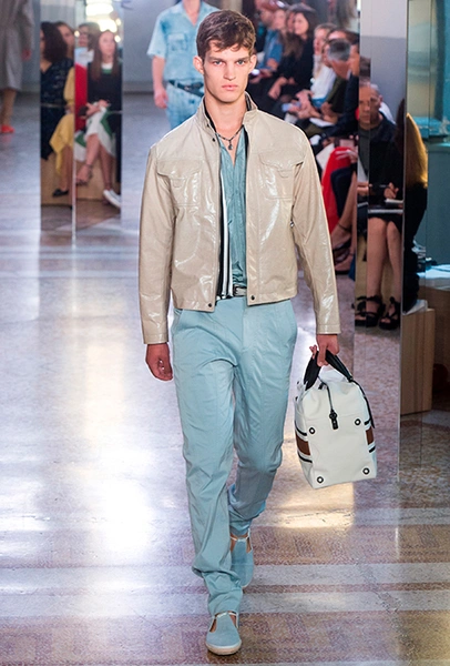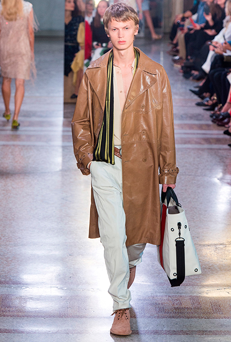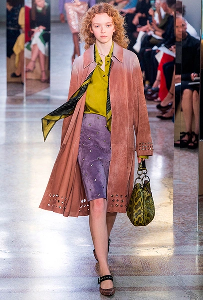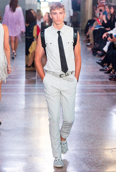 Как и у многих дизайнеров на миланской Неделе моды, блёсток, стразов и пайеток у Майера в этом сезоне много. Однако в его случае блестящие вещи выглядят не экстравагантными и не избыточными, а вполне себе casual, без отсылки к буйным 80-м. Такого эффекта он добивается, прежде всего, с помощью виртуозной работы с цветом. Оттенки здесь приглушённые, будто пропущенные через Instagram-фильтр (запрещенная в России экстремистская организация), который гасит их яркость, делая сложнее и интереснее. Деграде на некоторых вещах создаёт эффект потертости или «припыленном ты» ткани. Сочетает цвета Майер тоже мастерски, как в женских, так и в мужских образах: приглушённый розовый – с пепельно-лиловым, горчично-жёлтый – с «пыльным» коричневым. Различий по гендеру дизайнер не делает. Цвета одинаково хороши как «для него», так и «для неё».