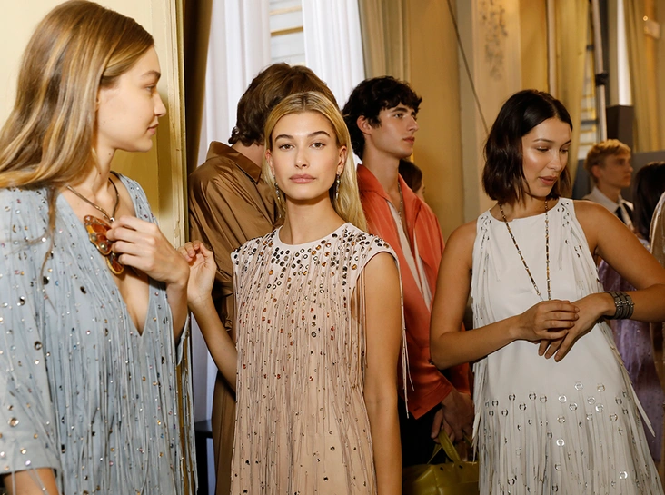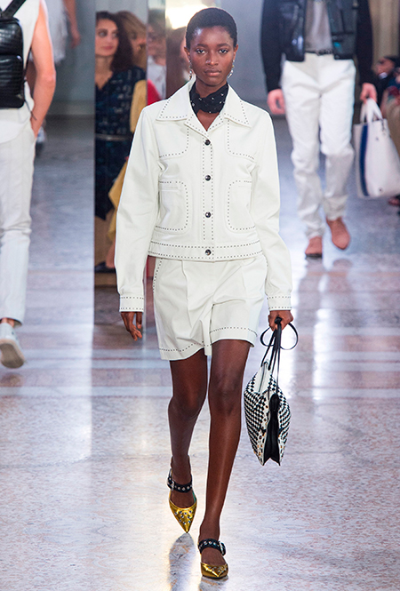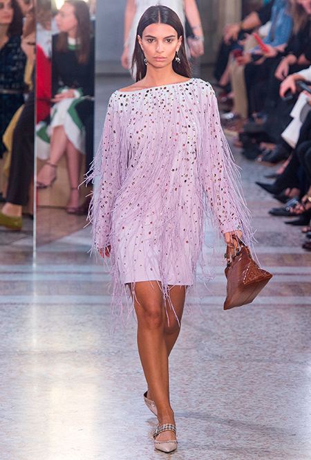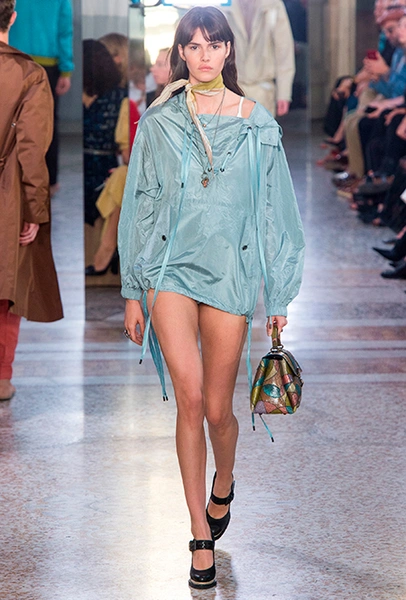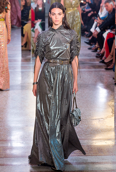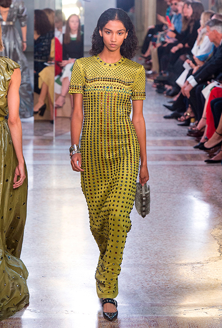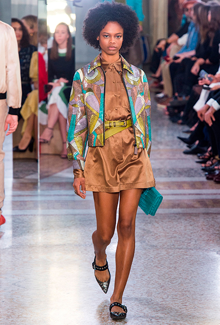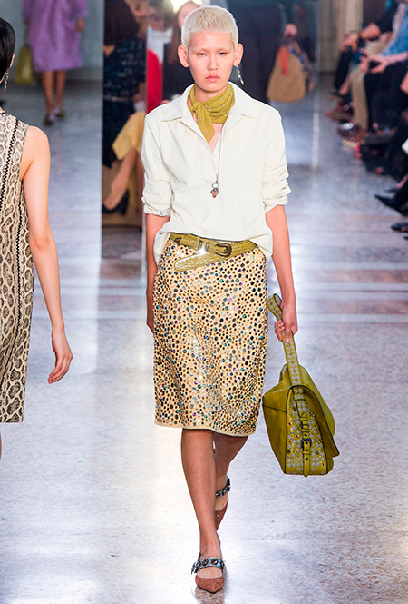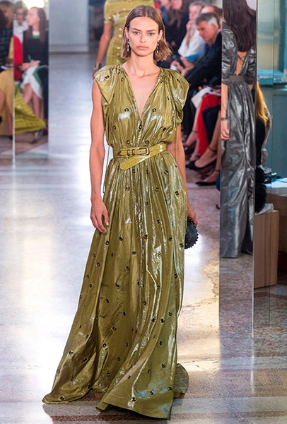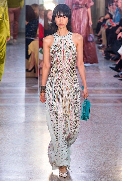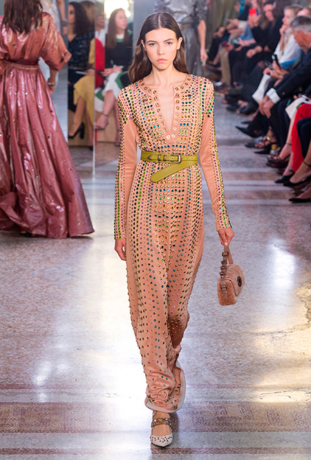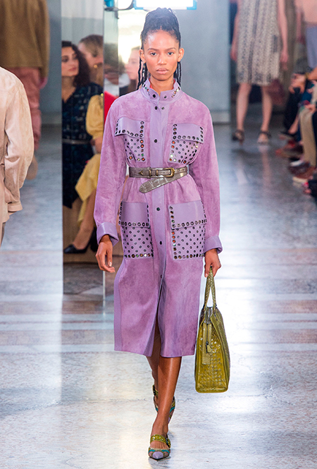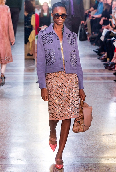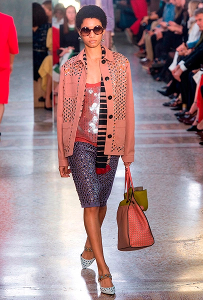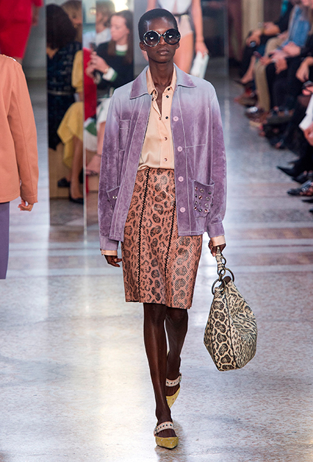 Как и у многих дизайнеров на миланской Неделе моды, блёсток, стразов и пайеток у Майера в этом сезоне много. Однако в его случае блестящие вещи выглядят не экстравагантными и не избыточными, а вполне себе casual, без отсылки к буйным 80-м. Такого эффекта он добивается, прежде всего, с помощью виртуозной работы с цветом. Оттенки здесь приглушённые, будто пропущенные через Instagram-фильтр (запрещенная в России экстремистская организация), который гасит их яркость, делая сложнее и интереснее. Деграде на некоторых вещах создаёт эффект потертости или «припыленном ты» ткани. Сочетает цвета Майер тоже мастерски, как в женских, так и в мужских образах: приглушённый розовый – с пепельно-лиловым, горчично-жёлтый – с «пыльным» коричневым. Различий по гендеру дизайнер не делает. Цвета одинаково хороши как «для него», так и «для неё».