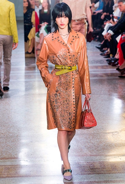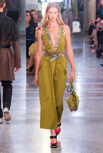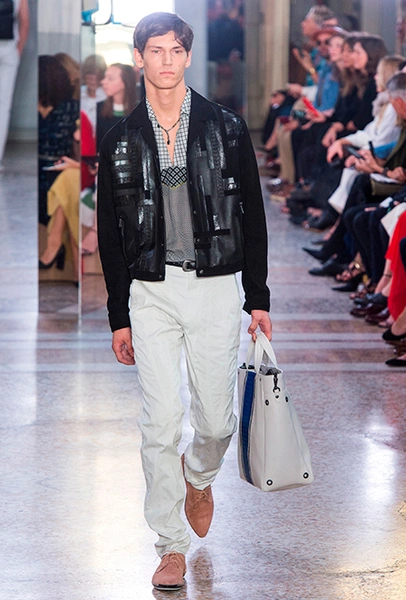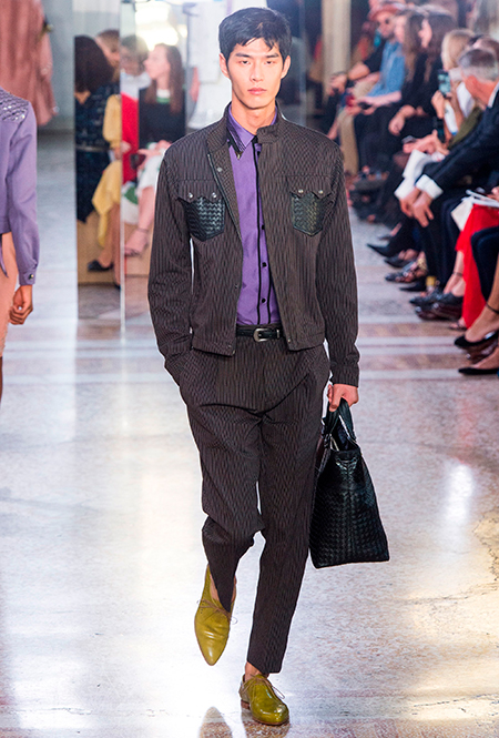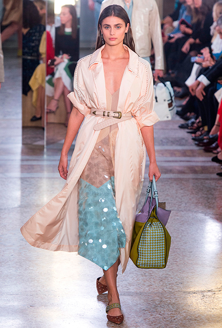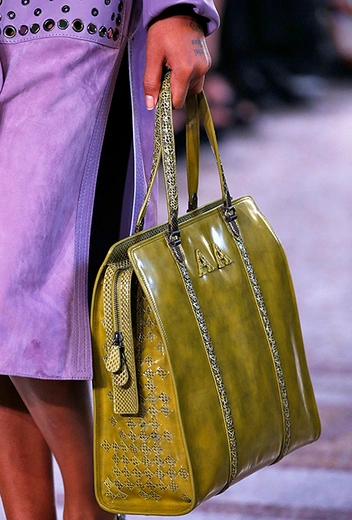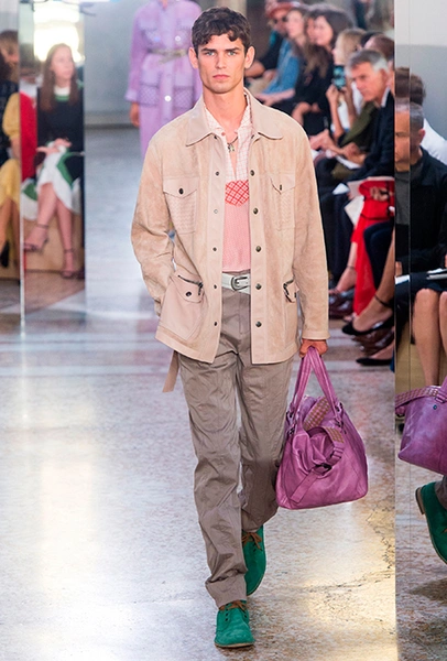 Специально для коллекции Майер переосмыслил архивную модель сумки BV73, созданную в 1973 году. Теперь она сделана из практических невесомых, тонко выделанных кожи питона и телёнка и раскрашена вручную. Другая новинка – линейка сумок Palio с яркими клетчатыми вставками. Из прошлых коллекций перешли полюбившиеся клиентам Knot и Piazza.