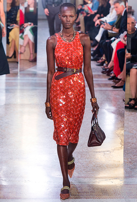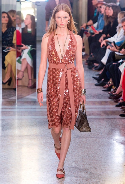 Если игра это, прежде всего, свобода, то Майер прав. В коллекции нет сковывающих движение силуэтов. «Даже наши платья в этот раз скроены как футболки», – подмечает дизайнер и с ним нельзя не согласиться. При этом выглядят такие «футболки» вполне нарядно и даже уместно на вечеринке. Например, туника из кожи анаконды с круглым воротом. Или ярко-красное хлопковое платье-поло, украшенное блоками с блестящей отделкой, где каждую блестку пришивали вручную.