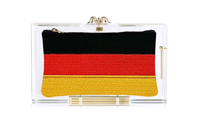 Сами клатчи состоят из корпуса Lucite с атласными вставками в виде флагов США, Аргентины, Бразилии, Италии и других стран. Все рисунки нанесены вручную, а застежки сумок сделаны в виде маленьких футбольных мячей.