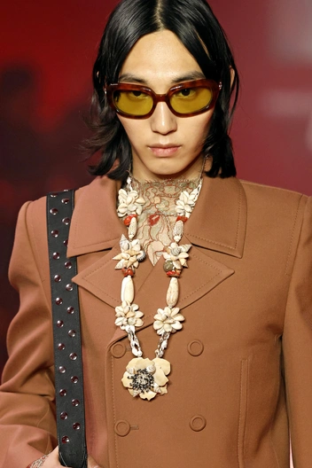 Мода всегда отражала мировые конфликты, и на показах осень-зима 2025 и весна-лето 2026 мы снова в этом убедились. В сезоне SS/26 модели бренда Dolce & Gabbana вышли в армейских жилетах с камуфляжным принтом, а вот в осеннем сезоне увидели много украшений с военными мотивами. Это и кулон Veronique Leroy на толстой цепи с округлой конструкцией, напоминающей то ли кандалы, то ли бомбу. И ожерелье Gabriella Hearst с острыми и вытянутыми, словно пули, деталями. Впрочем, если отбросить нарратив, то украшение может вписаться во многие образы — выглядит минималистично и выражает собранность и силу.