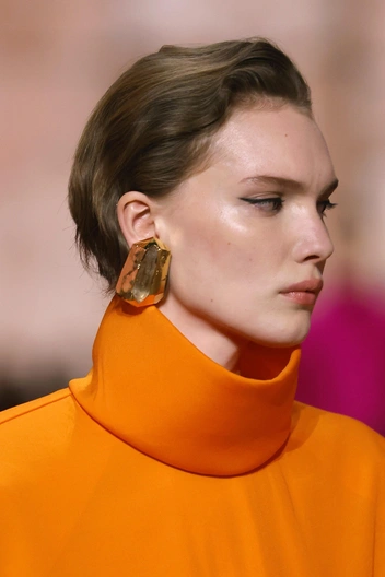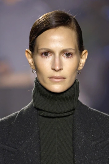 За рубрику «минимализм» на показах осень-зима 2025 отвечали серьги-кольца. Модели многих брендов добавили их в свои образы, что позволяет говорить о полноценном тренде. Вариантов носить кольца много: можно надеть несколько сразу, как на Christopher Erber, а можно и одни, как на Victoria Beckham. Главное, чтобы кольца были именно серебряными — на Неделе моды именно они правили бал.