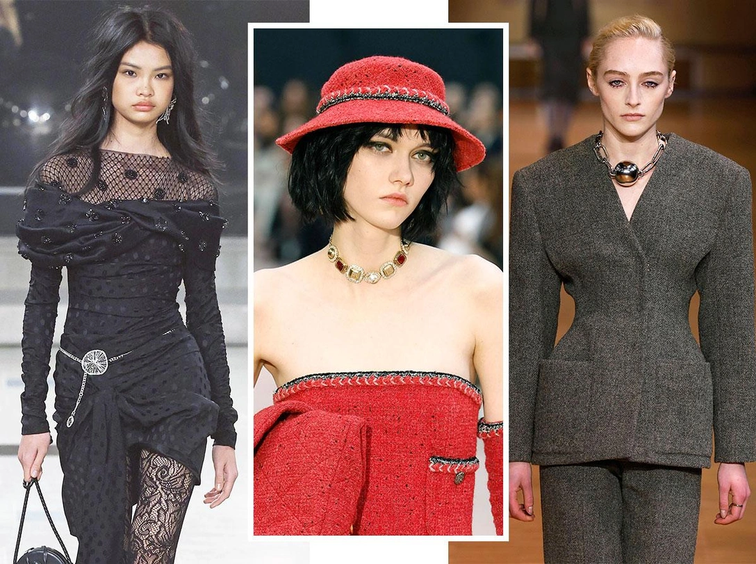 Одним из трендов лета 2025 года были бодичейны, но эта тенденция оказалась более долговечной. Она появится и осенью — только вот носить пояса мы будем, конечно, поверх одежды. Цвет пояса неважен — на показах увидели как серебро, так и желтое золото. А вот на стиль бодичейна стоит обратить внимание: в показах осень-зима увидели много бохо, а вот тонкие и минималистичные пояса останутся в летнем сезоне.