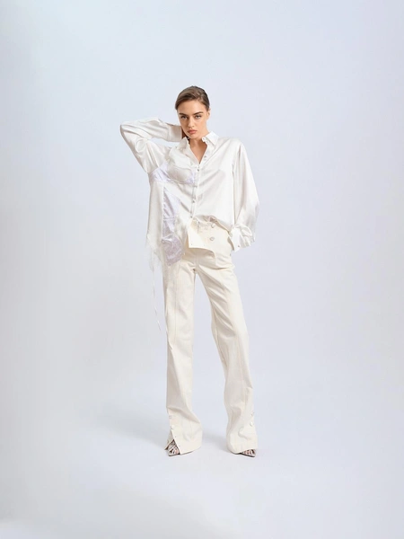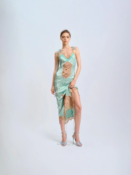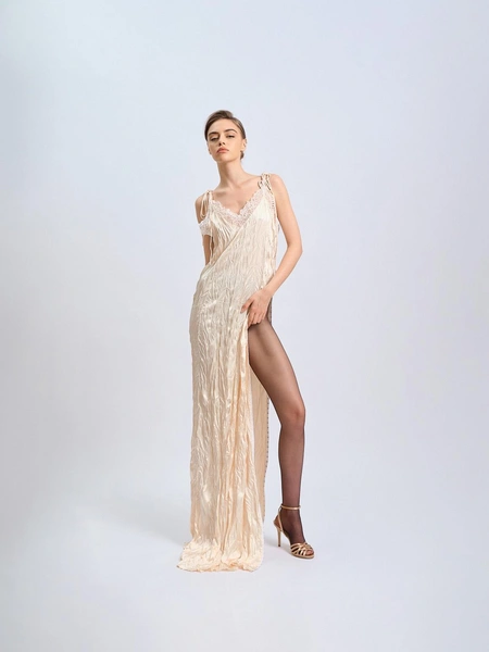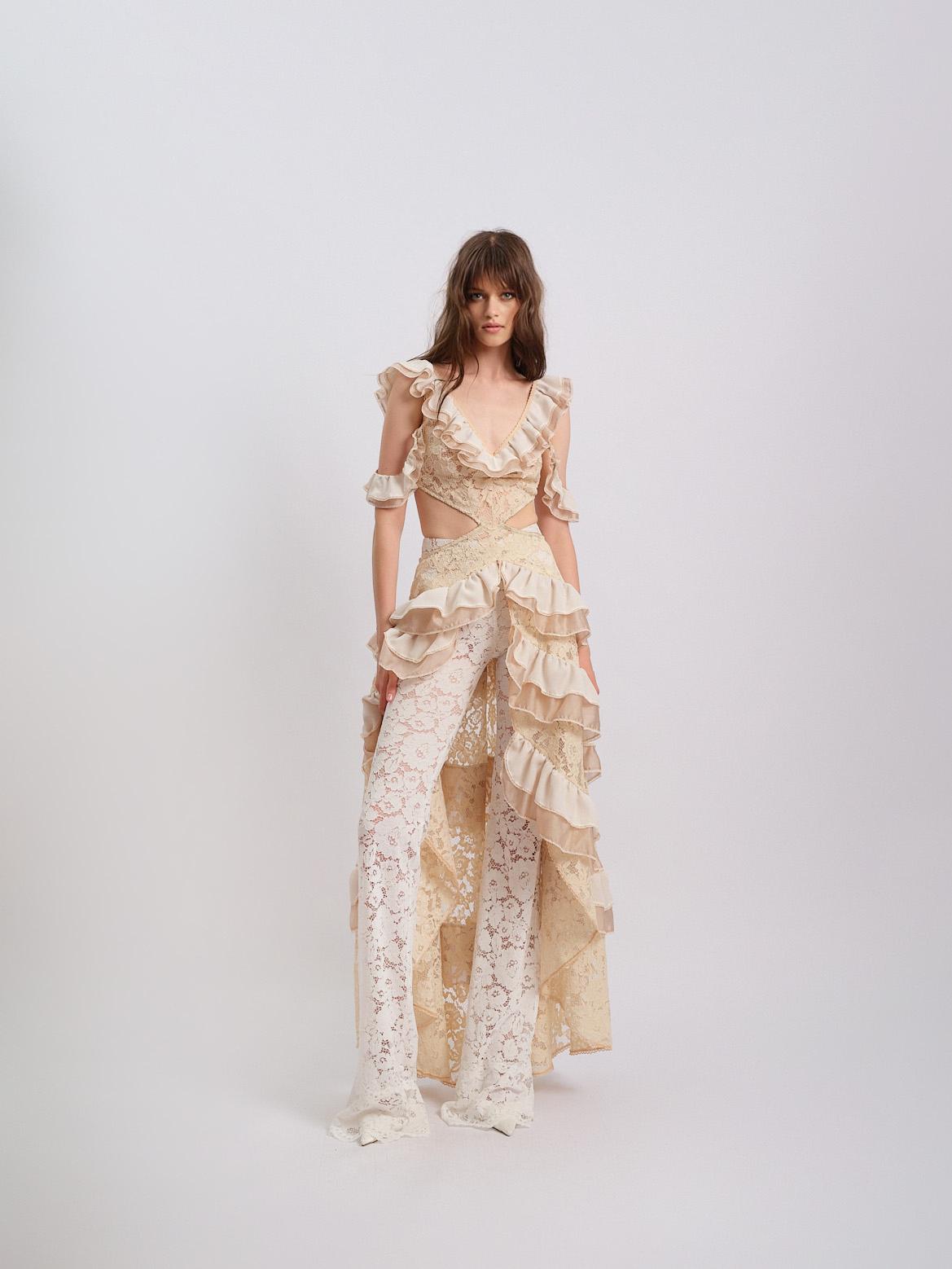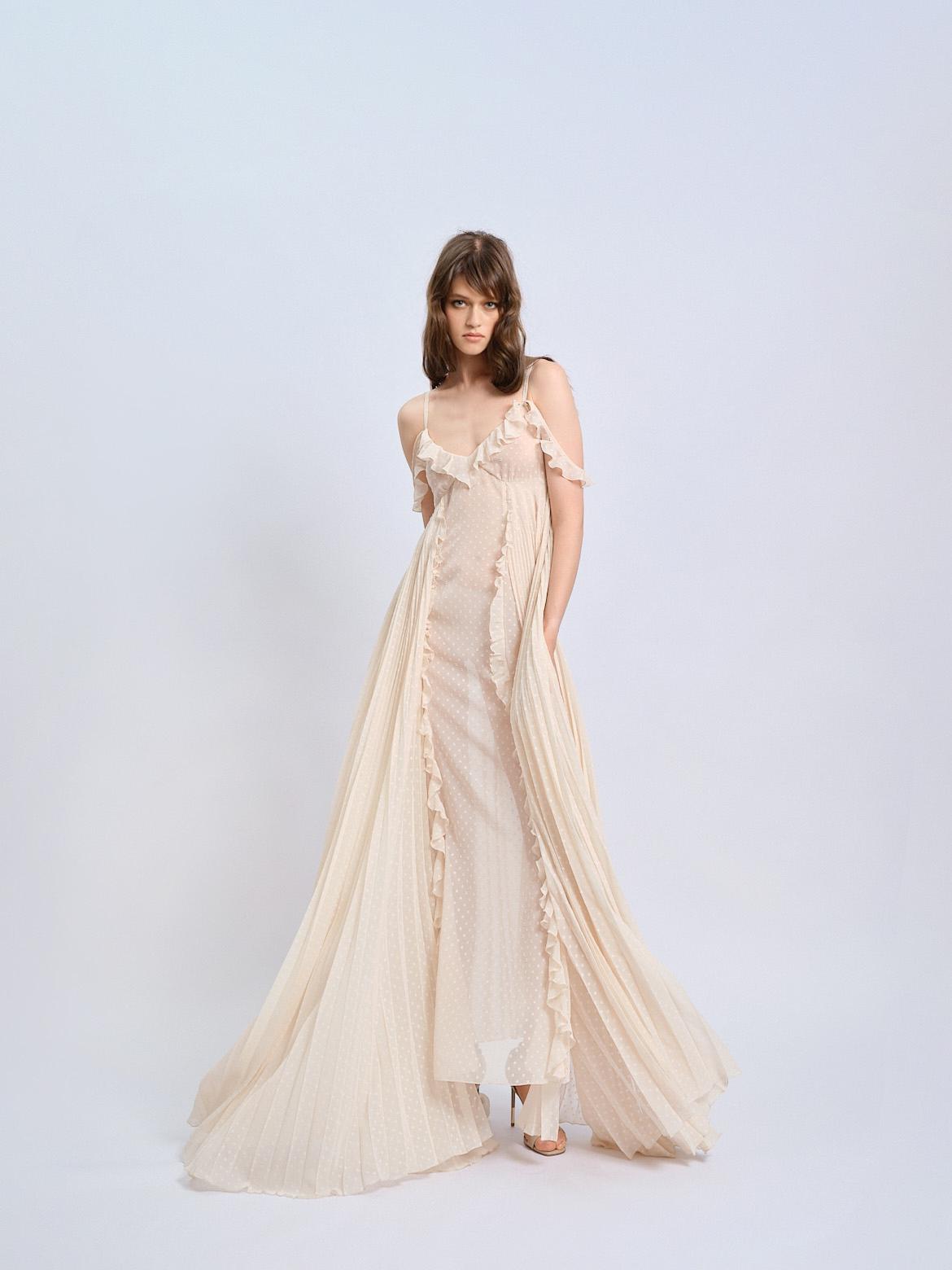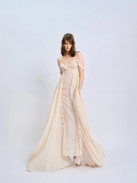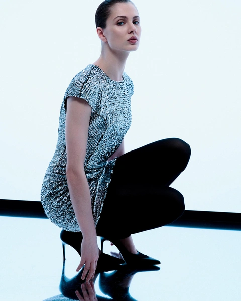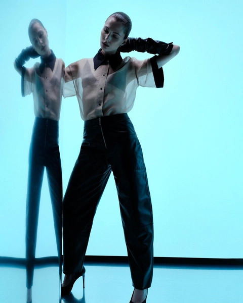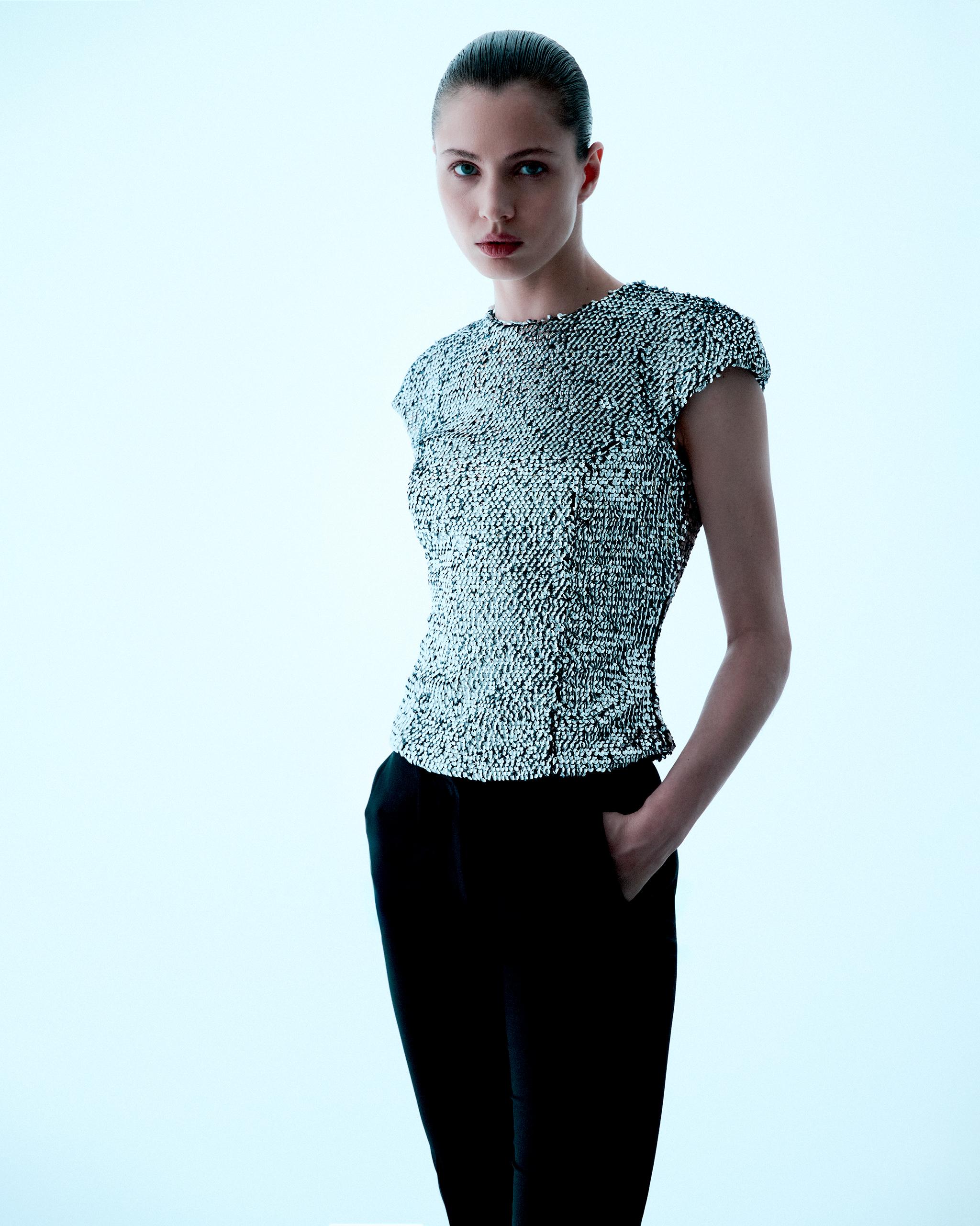 Сексуальность и легкость взаимодействуют с гардеробом, создавая коллекцию, в которой образы трансформируются в зависимости от стиля. Блузы с пайетками и кожаные брюки формируют уверенный городской образ, а макси-платье из бисера, в зависимости от сочетаний, может стать как романтичным, так и провокационным нарядом.