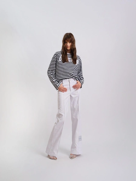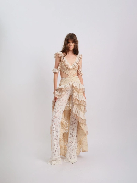 Коллекция La Bohème des Les Archives — это сочетание безмятежного духа летних дней на французском побережье Довиль-Трувиля. Изысканная, но провокационная комбинация невесомого кружева и денима, игривые детали, воздушные фактуры воланов на топах и платьях подчеркивают чувственность и смелую женственность героини Les Archives. Мы словно применяем бирюзовый фильтр к каждому образу и представляем свое имя на одной из именных кабин на пляже Довиль. В коллекцию также вошли бестселлеры бренда: узнаваемые жакеты и спенсеры, тельняшки с лозунгами Glamour и Allure, объемные рубашки с авторскими элементами и костюмы из кордового кружева.