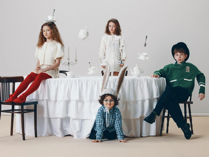 В весенней коллекции LIMÉ Kids представлены новинки, с которыми легко составить капсульный гардероб нового сезона для мальчиков и девочек 3–6 и 7–14 лет. В сказочной атмосфере, отсылающей к «Алисе в Стране чудес», модели демонстрируют романтичные образы с яркими деталями. Сеты из твида украшают сверкающие пуговицы, застежку алых балеток из шелка — объемная роза в тон и пряжка с кристаллами в форме сердца, а фактурное платье цвета экрю дополняет жаккардовый узор с цветочными мотивами.