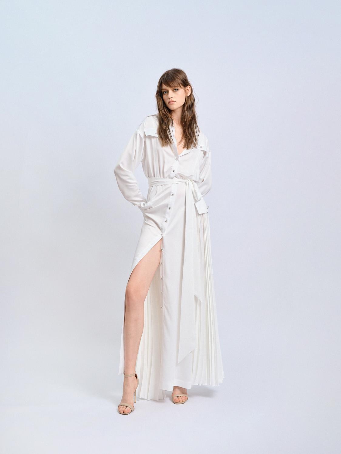 Spring’25 — это продуманный гардероб для нового сезона, включающий ключевые вещи, которые стоит приобрести после сезонного разбора шкафа. Коллекция сочетает базовые элементы и акцентные модели, создавая баланс между универсальностью и индивидуальностью. В нее вошли несколько базовых лонгсливов и легких трикотажных джемперов, замшевые и кожаные куртки-жакеты прямого кроя в комплекте с юбками-макси, лаконичное удлиненное пальто из шерсти и шелка со строгой линией плеч и подчеркнутой талией, а также универсальное шифоновое платье с бантом на шее.