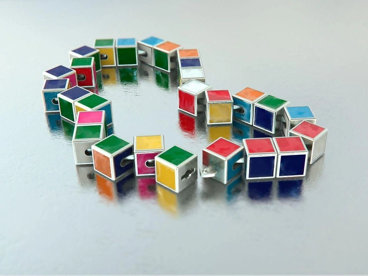 Завершить образ помогут новые аксессуары от DZHANELLI JEWELLERY — ювелирного бренда, в основе которого лежит любовь к созданию интеллектуальных украшений. Эту концепцию как нельзя лучше раскрывает концептуальный браслет Кубик Рубика от основательницы и вдохновительницы бренда Дианы Джанелли. Дизайнер показывает отношение людей к решению задач через призму знаменитой головоломки: кто-то просто любуется красотой, другой изучат алгоритм, но сдается, и только немногие в удовольствие доводят начатое до конца.