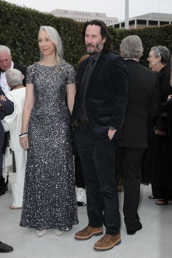 Как раз на этом вечере всем стало ясно, что Александра — чуть больше, чем просто друг для Киану. Пара выбрала яркие образы для первого романтического появления. Грант надела неожиданное темно-синее платье с серебряными пайетками, серебряные туфли на плоской подошве и завершила образ черным клатчем и крупными браслетами. Киану примерил темно-синий вельветовый костюм с графитовой рубашком и коричневой обувью.