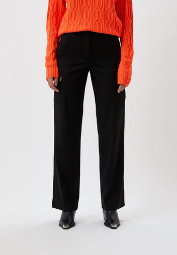 В этом осенне-зимнем сезоне актуальны брюки с широкими штанинами и крупными декоративными карманами. Массивный низ можно уравновесить при помощи лаконичного и сдержанного топа, водолазки или боди (читайте также: Моднее водолазки: как правильно носить боди, чтобы не выглядеть нелепо — лучшие сочетания).