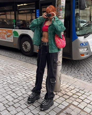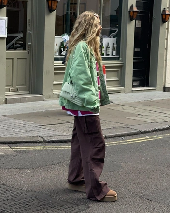 Универсальная формула стильного аутфита на осень может выглядеть так: карго + пуховик или бомбер. Именно эти предметы верхней одежды пользуются особой популярностью в этом сезоне, а также круто смотрятся с трендовыми брюками. Из обуви подойдут как модели на плоском ходу, челси, ботинки на шнуровке или кеды, так и ботильоны на каблуке и сапоги в стиле нулевых с острым мысом (читайте также: 5 моделей сапог, которые вы носили еще в нулевые — и они снова в моде).