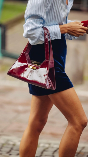 Смелый и страстный оттенок, на удивление, безупречно сочетается с самыми разными цветами в гардеробе: голубым, серым, молочным, фиолетовым, зеленым. Именно поэтому не стоит отрицать винную сумку, так как она станет эффектным дополнением вашего образа, способным преобразить даже самую банальную одежду.
