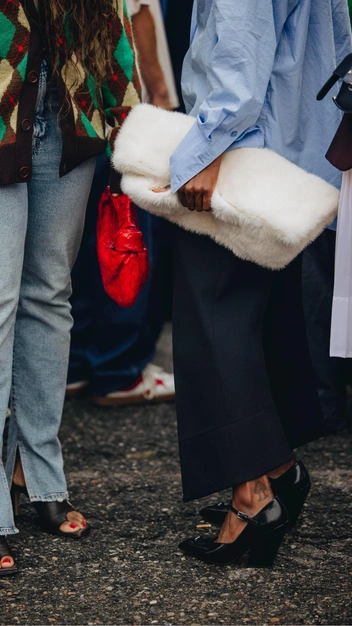 Поскольку цвет является броским, то форма аксессуара должна быть сдержанной: выбирайте лаконичные клатчи, «багеты», сэддлы или кожаные тоуты с минимальным количеством деталей.