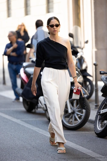 Обратите внимание на базовые брюки палаццо, которые можно использовать как для современного офисного образа, так и для луков на каждый день. Тем девушкам, которые никогда не носили подобные модели и выбирали для повседневного гардероба джинсы, можно попробовать и небанальную стилизацию. Их можно носить с кедами ретро и свитшотом, а также надеть в ресторан с ботильонами на каблуке с острым мысом. Для образа на выход миксуйте модель с корсетным топом или интересным прилегающим джемпером (читайте также: Как выбрать стильный ремень: важные правила и актуальные модели).