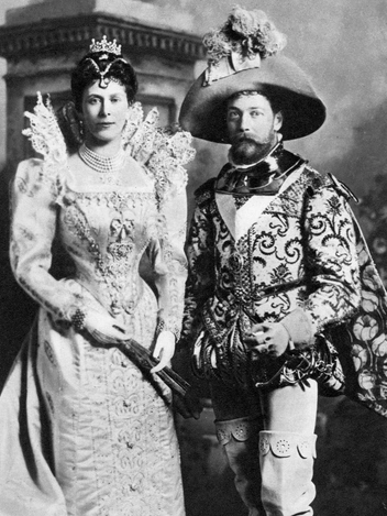 На снимке справа герцогиня Йоркская запечатлена в тиаре «Девушки Великобритании и Ирландии» в форме короны на костюмированной вечеринке, на которой она и герцог Йоркский оделись как 3-й граф Камберленд и дама при дворе Маргариты де Валуа.