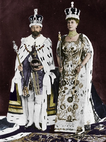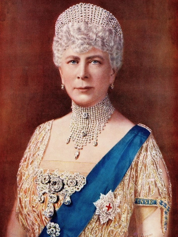 В то время как правящие монархи наследуют Имперскую государственную корону (на официальном коронационном портрете 1911 года слева на короле Георге V), их супруги носят специальные короны, сделанные исключительно для них. Традиция началась во времена правления Георга III, жена которого Шарлотта заказала собственное коронационное украшение, а не использовала корону Марии Модены, как это делали предыдущие консорты. В 1911 году королева Мария заказала Garrard свой ювелирное изделие в стиле ар-деко, которое было усыпано 2200 бриллиантами, включая бриллиант Кохинур весом 105,6 карата, бриллиант Куллинан III весом 94,4 карата и Куллинан IV весом 63,6 карата. В 1914 году камни были удалены и заменены хрустальными версиями (два бриллианта Куллинан стали частью знаменитой бриллиантовой броши, которую королева Елизавета называла «бабушкиными чипсами»), а дуги стали съемными, чтобы корону можно было носить как открытую тиару. Именно в таком виде Мария носила изделие на коронации своего сына Георга VI в 1937 году.