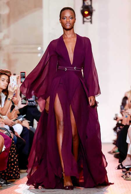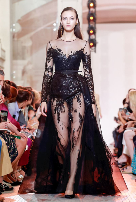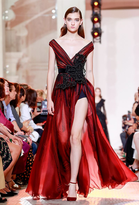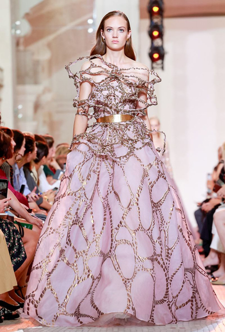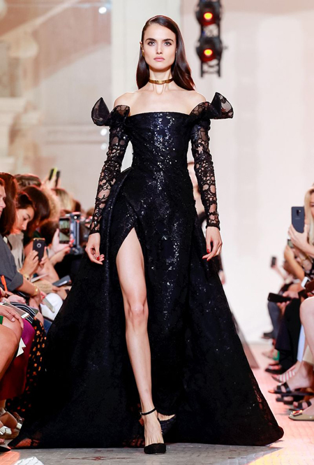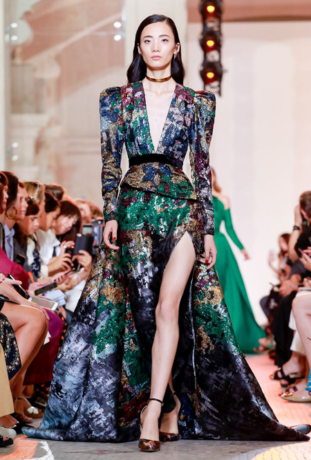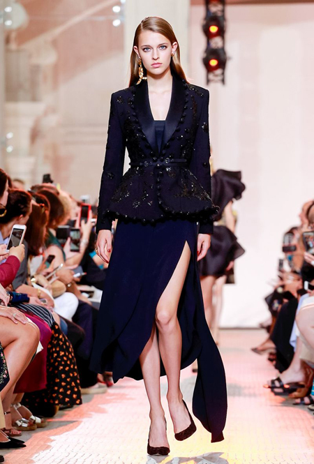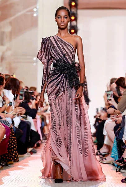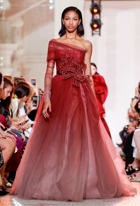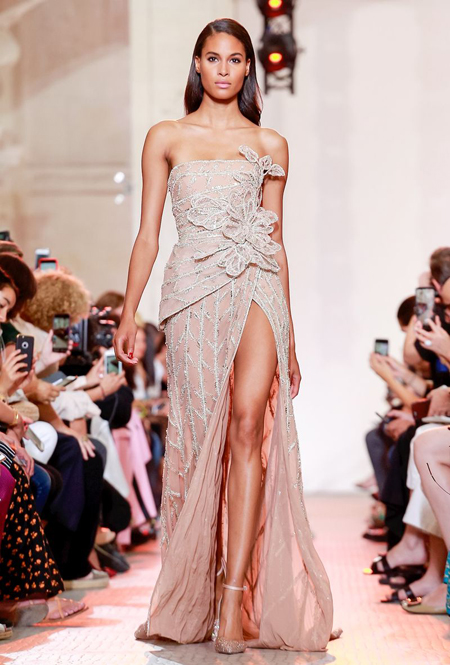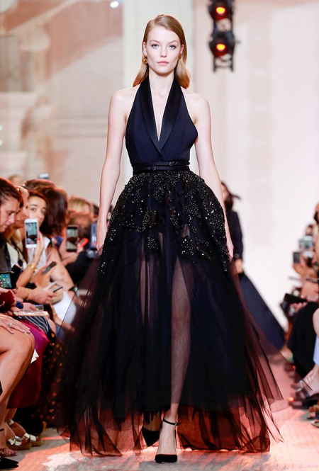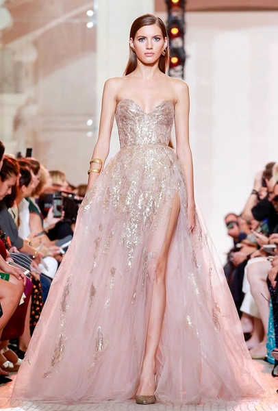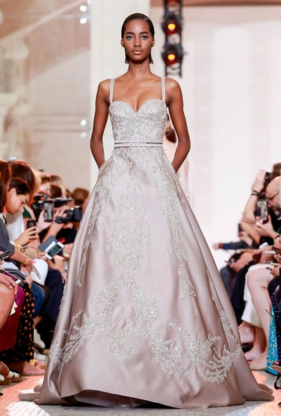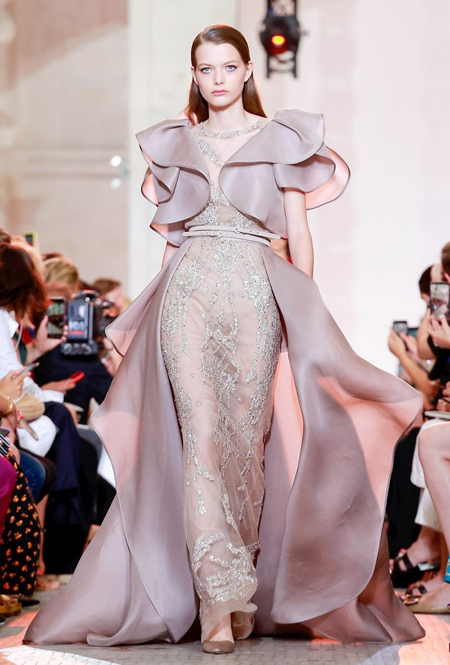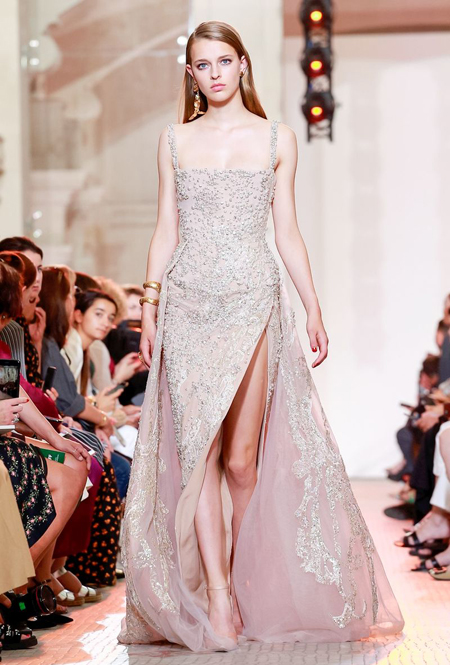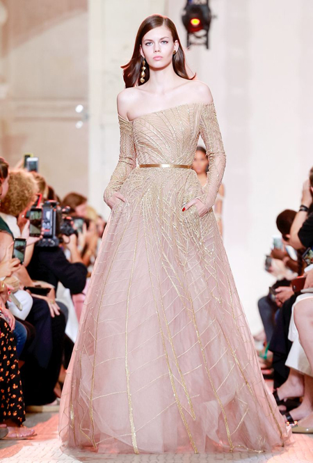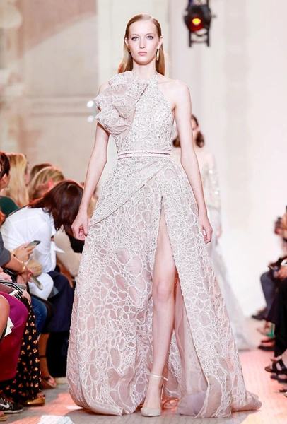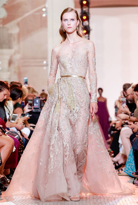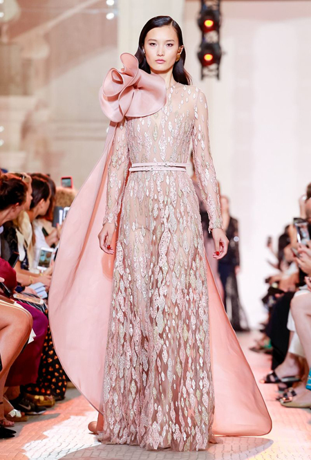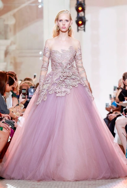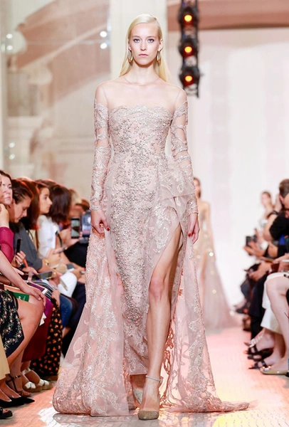 Новая кутюрная коллекция Elie Saab гламурна как никогда раньше. Основными цветами на этот раз стали все вариации розового (самого «гламурного» цвета во всей палитре). Модели дефилировали по подиуму в кружевных облегающих платьях оттенка pink champagne, в туалетах с пышным подолом цвета багряного заката и в бальных платьях-декольте оттенка лепестков соцветий шиповника. Чтобы не выглядеть однообразным (коммерческому дизайнеру однообразия не прощают), Сааб разбавил «розовые грезы» вкраплениями нежно-голубого, изумрудно-зеленого, алого и, конечно, черного.