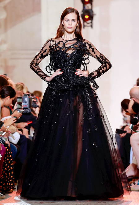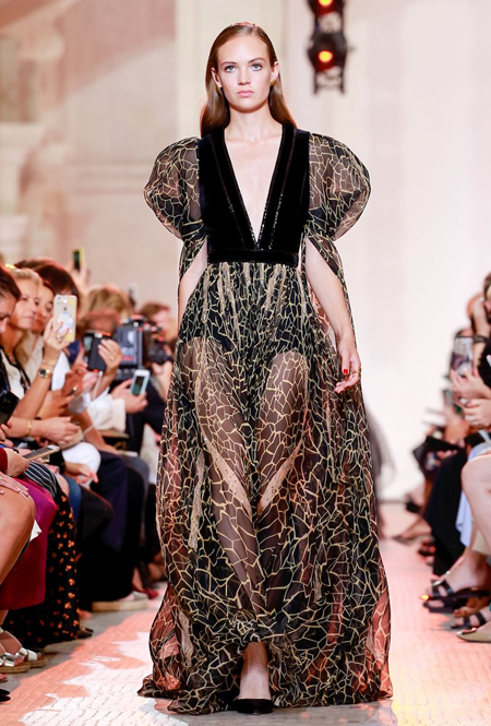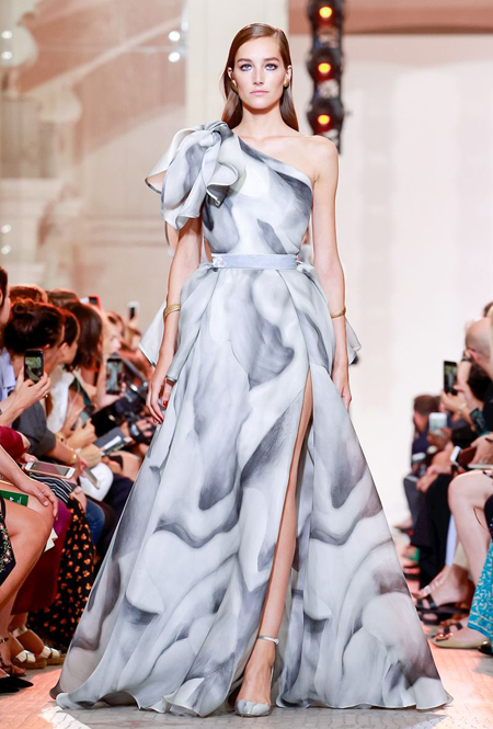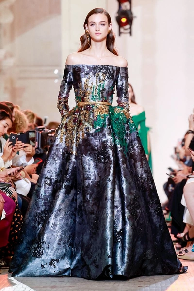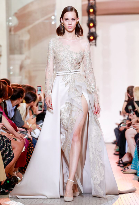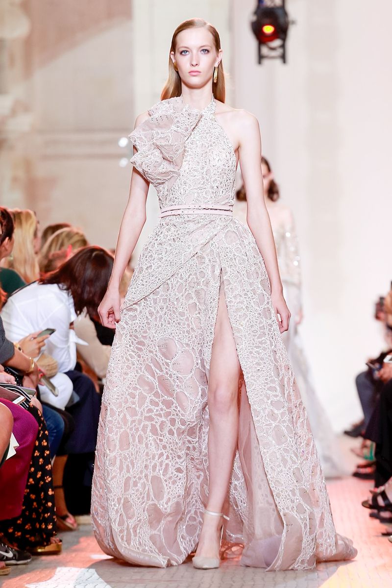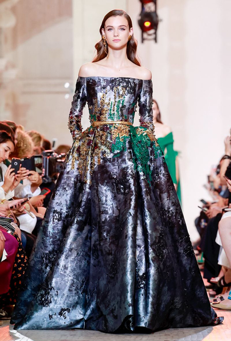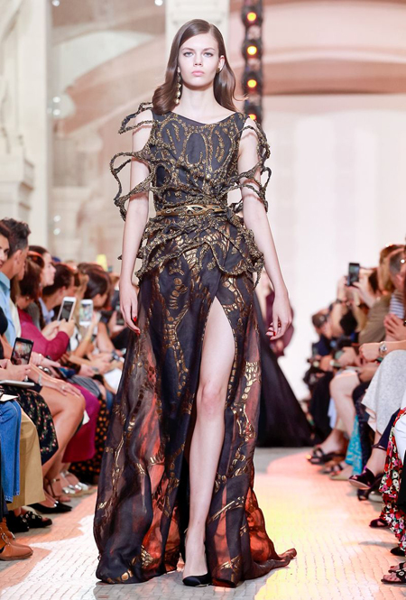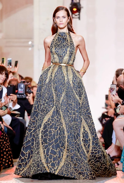 Кроме того, в коллекции есть несколько моделей с черно-белым принтом, похожим на мраморный рисунок. Есть вещи, расшитые нитями, которые напоминают золотые прожилки. Есть платье, скроенное так, что вызывает в памяти сложные средневековые скульптуры из меди с инкрустациями. Если копнуть глубже, становится понятно, что за «гламурным» блеском коллекций Сааба скрывается вдумчивая и кропотливая работа — как самого дизайнера, чья фантазия рождает такие сложные образы, так и сотен мастеров, которые воплощают их в реальность. Остается надеяться, что большинство почитателей и клиентов Elie Saab достаточно любознательны и наблюдательны, чтобы суметь дойти до сути.
