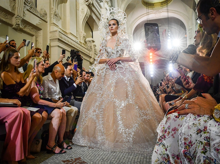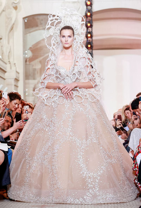 Действительно, почему бы, собственно, ни любить роскошные платья в пол, расшитые, стразами и драгоценными камнями? Почему бы ни трепетать при виде длинных шлейфов, тонких кружев, бантов и глубоких вырезов? Сааба ценят за то, что над его одеждой не надо думать: в его творчестве нет скрытых смыслов, он не пытается делать заявлений и эксплуатировать актуальную повестку. Его негласное кредо: «Одежда — чтобы украшать». Такой подход тоже имеет право на существование. В конце концов, нельзя без остановки смотреть фильмы Ларса фон Триера. Иногда душа требует романтической мелодрамы с обязательным поцелуем под дождем в конце.