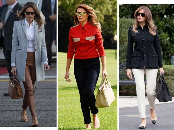 Мелания Трамп довольно сильно отличается от других первых леди, когда речь идет о моде и стиле. Часто супруги президентов стараются комбинировать модели известных брендов с демократичными модными марками. Однако Мелания рада оставаться миссис Трамп и в статусе супруги президента: в ее коллекции есть общепризнанный маркер богатства и тяги к роскоши ─ бренд Hermès Birkin. Причем такой образец у жены Дональда Трампа не один, а более шести, и стоят они целое состояние.