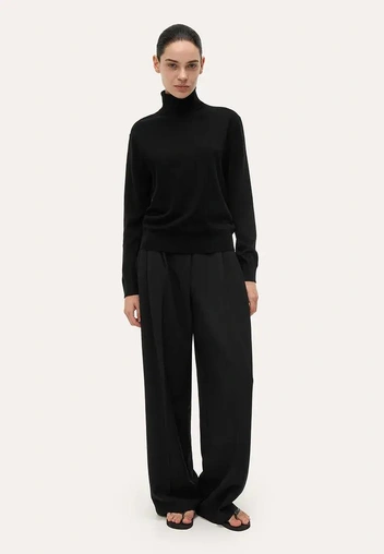 Водолазка + брюки/джинсы с высокой талией + классическая обувь — идеальный образ для офиса и городских прогулок.