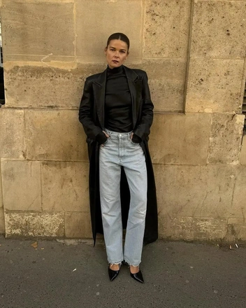 Признаемся честно: черная водолазка — классика, которая легко может превратиться в скучную банальность. Как сохранить в ней игру и свежесть? Ответы есть, опять же, у французских модниц. Их магия заключается в аксессуарах и наслоении — сочетании нескольких слоев. Например, классическое черное пальто, слегка растрепанная косуха или твидовый жакет, а под ним «незаметная» водолазка, которая задает тон всему образу (читайте также: Идеальное пальто на осень существует — 30 вариантов от российских дизайнеров).