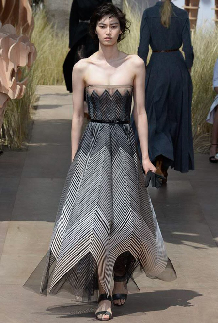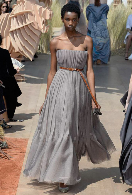 Дворец Инвалидов в Париже ненадолго превратился в Эдемский сад в миниатюре. Пространство для показа второй кутюрной коллекции Марии Грации Кьюри для Dior оформил итальянский художник Пьетро Руффо. Перед зданием «поселились» будто вырезанные из картона (на самом деле, из дерева) экзотические животные – слон, жираф, лев, тигр, крокодил, носорог, обезьяна. А над всем этим – эффектный подвесной потолок с нарисованной на нем звездой, каждый из пяти лучей которой символизирует континент.