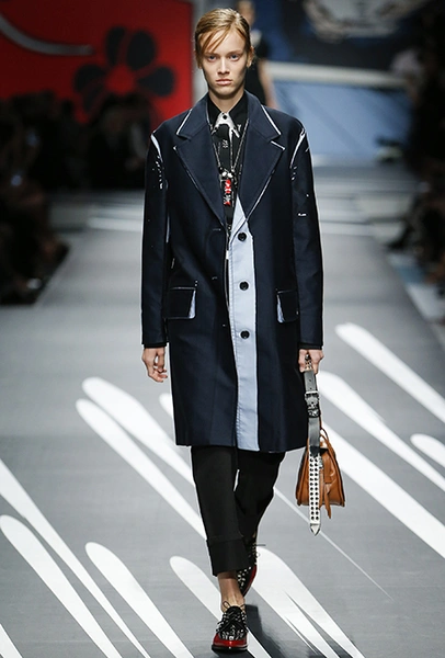 В целом, коллекция получилась очень рок-н-ролльной. Несмотря на то, что силуэты были довольно «консервативными» ─ преобладали прямой и А-силуэт, ─ вышивка металлическими деталями и размер oversize делали вещи достойными гардероба группи из 70-х, эпохи расцвета рока. Дополняли все яркие аксессуары ─ длинные гольфы, разноцветные туфли и даже одна шапка, похожая на «треуголку» сделанную из газеты.