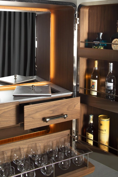 С 18:00 до 20:00 гости наслаждались атмосферой стиля, делясь идеями и вдохновением в искусно оформленном пространстве. Главным событием вечера стала презентация Cocktail Cabinet. Это предмет интерьера, который призван изменить представление о домашних барах и лаунджах. Cocktail Cabinet от Officine Gullo не только отражает высочайшие стандарты итальянского мастерства, но и представляет собой идеальный баланс между элегантностью и функциональностью. Гостям было предложено насладиться изысканными аперитивами, приготовленными профессиональными барменами, что добавило нотку утонченности и праздничного настроения в вечер.