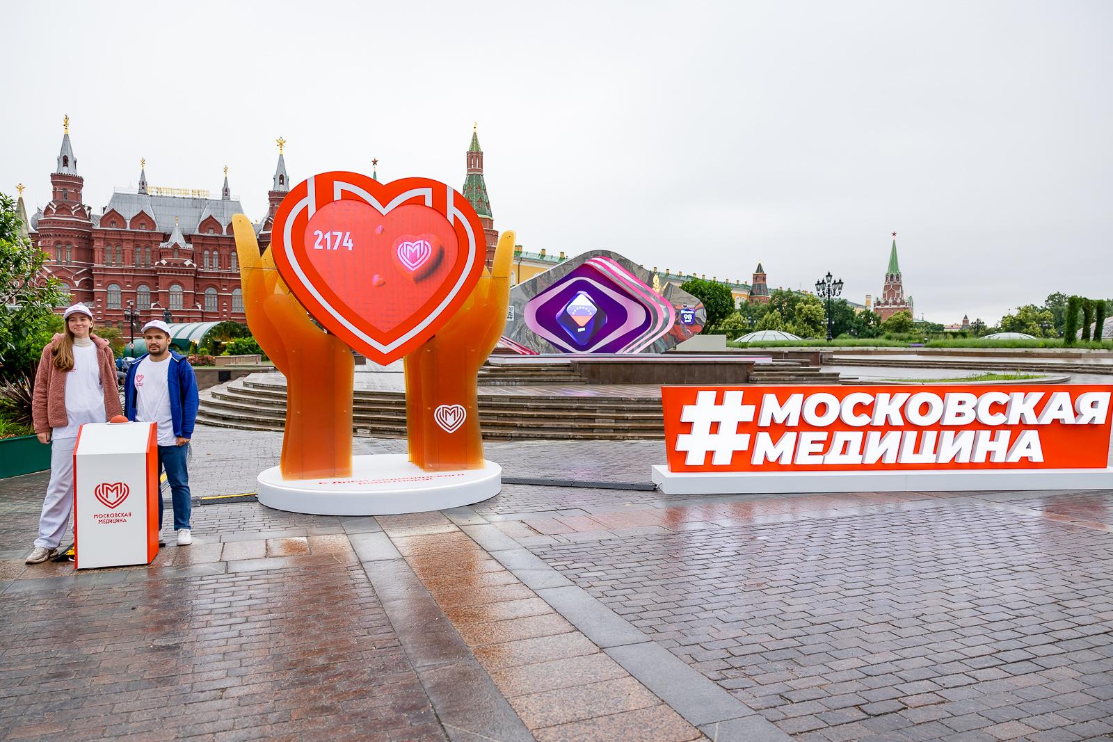 15 июня на улицах Москвы появилось праздничные декорации и интерактивные инсталляции. Все это было приурочено ко Дню медработника. Жители города могли выразить благодарность сотрудникам медучреждений, отправив им «Спасибо» через специальные арт-объекты с кнопками. Они появились в «Музеоне», на ВДНХ и Патриарших прудах. Все поздравления отразили на центральной инсталляции в виде огромного сердца на Манежной площади.