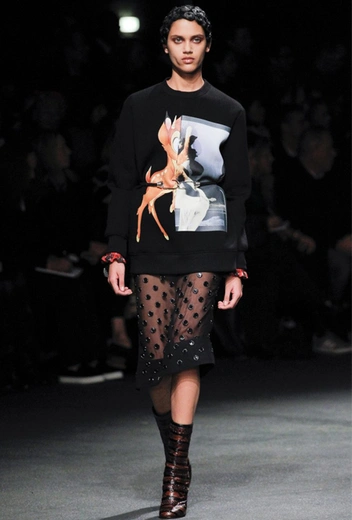 Помимо Эльбаза, герои мультфильмов Disney появлялись и в осенне-зимней коллекции Givenchy 2013 года. У руля бренда на тот момент стоял Рикардо Тиши, и для самого дизайнера коллекция получилась очень личной — в ней он собрал культовые коды как самого дома Givenchy, так и образы, вдохновленные собственными архивами. Несмотря на разнообразие мотивов — смеси мрачной готики, глэм-рока, и романтики викторианской эпохи — самой знаковой вещью стал свитшот с сюрреалистичным изображением олененка Бэмби. У Тиши диснеевский образ из детства совсем не выглядит шутливо, забавно и иронично, даже наоборот — мрачно, серьезно и глубоко.