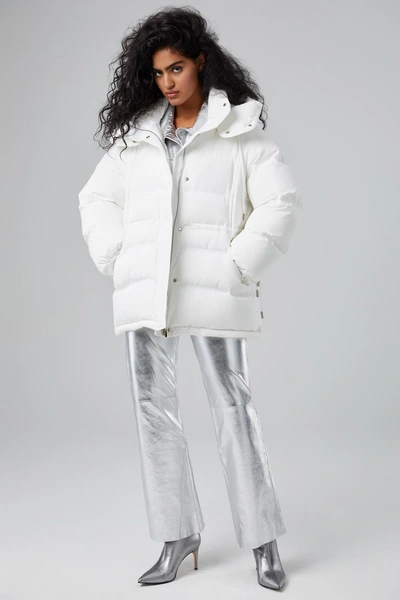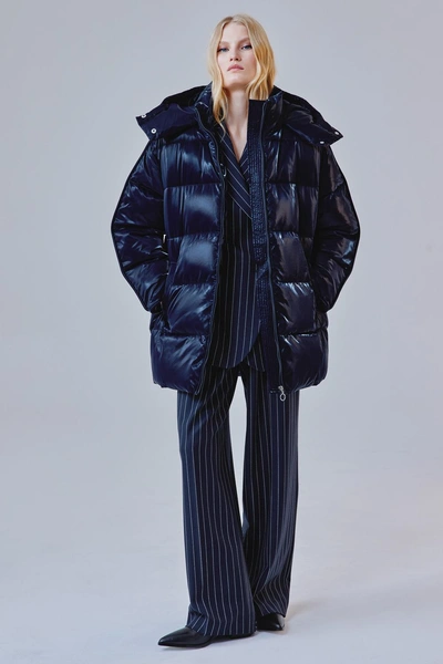 длинный стеганый пуховик WOOLRICH, широкие брюки A Paper Kid с накладными карманами и куртку FORTE DEI MARMI COUTURE в рабочем стиле.