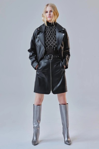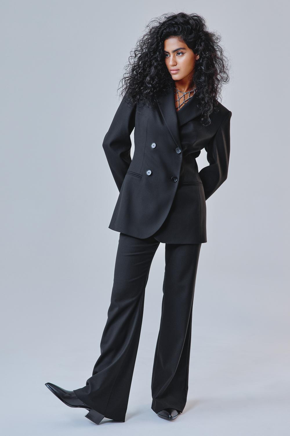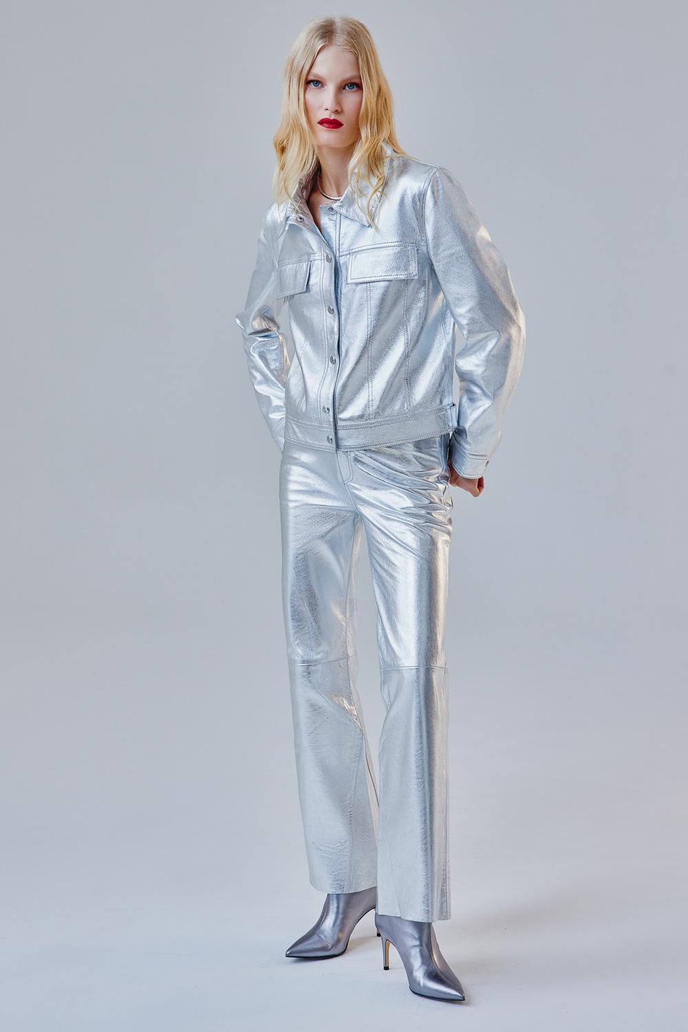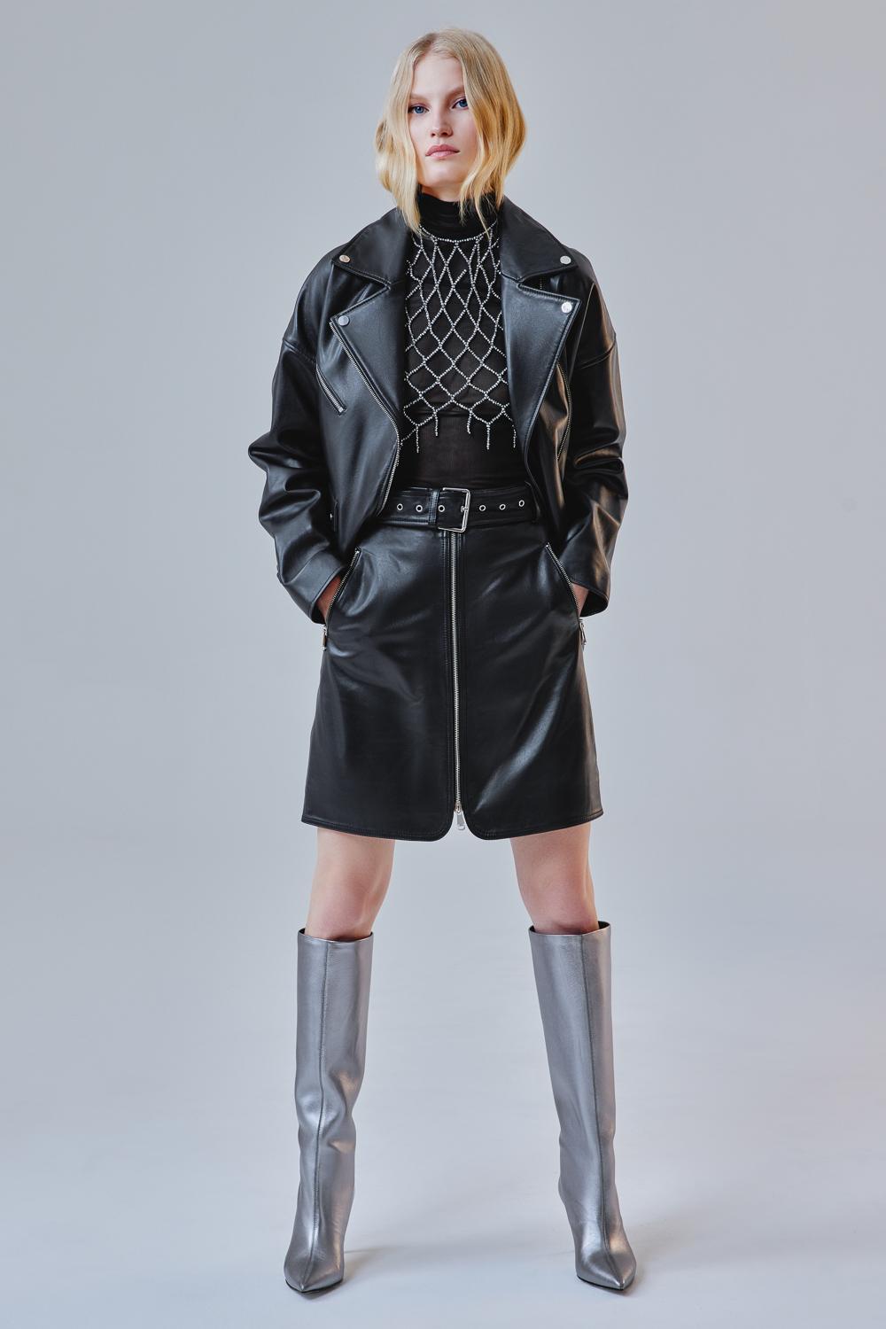 Одной из главных тем нового сезона стал кожаный тотал-лук, который можно разбавить трикотажными джемперами фактурной вязки. Офискор нашел отражение в пальто макси с выразительными плечами, брючных костюмах и платье-бюстье в тонкую полоску. За романтическое настроение отвечают длинные пышные юбки с асимметричным низом, полупрозрачные водолазки и боди с объемными рукавами. За случаи, требующие эффектного появления — алое платье, черный комбинезон с асимметричным верхом и серебряный брючный костюм из кожи.