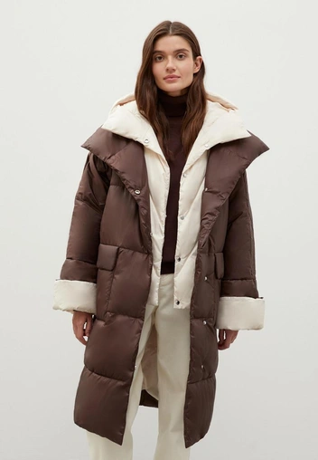 Чем заменить: если вам хочется, чтобы пуховик создавал ощущение уюта и мягкого «облака», можно присмотреться к трендовым свободным моделям. За счет контраста с оверсайз-силуэтом фигура в них смотрится более хрупкой и утонченной. Главное — чтобы форма изделия не была слишком гипертрофированной и пуховик не выглядел огромным.