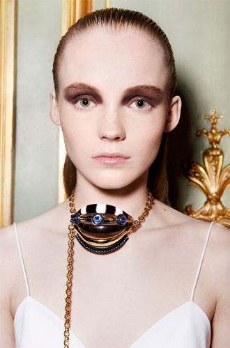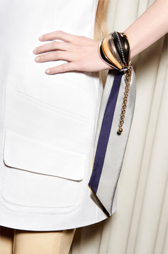 Дух путешествий и побега в неизвестность особенно четко прослеживается в линии браслетов – они собраны из разноцветных колец, которые выполнены из темного дерева, кожи, эмали, камней и металла, а к тому же дополнены летящими и развевающимися на ветру лентами. Внешне они напоминают диковинные ракушки или украшения африканских племен – артефакты, собранные из маленьких, но очень важных и ценных деталей.