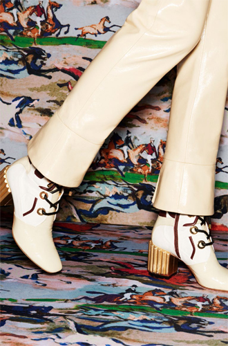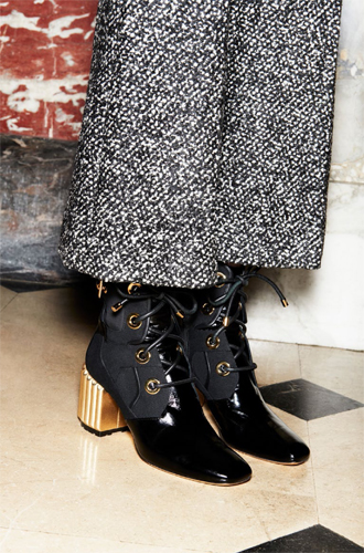 Африканская тематика на этом в коллекции не заканчивается и достигает своего пика в обувной линии: принт жирафа и кожаные вставки в стиле сафари украшают высокие ботинки и сандалии. К слову, анималистичная тема – одна из любимых в коллекциях самого Кристина Диора. Но даже тут не обошлось без неожиданностей: каблук и платформа в виде позолоченных колонн отчетливо напоминают барочный декор роскошных залов Блейнхемского дворца, и тем самым объединяют сразу несколько travel-историй в коллекции. И это еще раз подтверждает факт, что в круизных коллекциях не может быть границ. Только дух странствий и полная свобода.